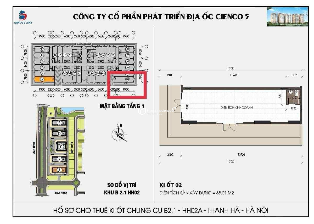 Kiot nằm tại tòa HH02A khu 11 toà mặt đường Cienco5, vị trí