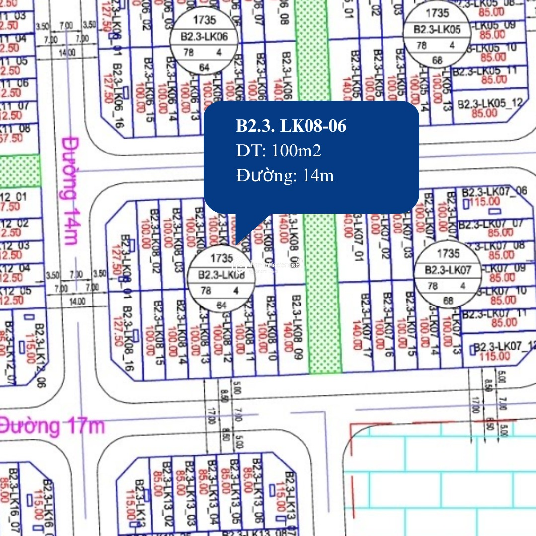 Chính chủ bán liền kề B2.3 LK08-06 diện tích 100m2 đường