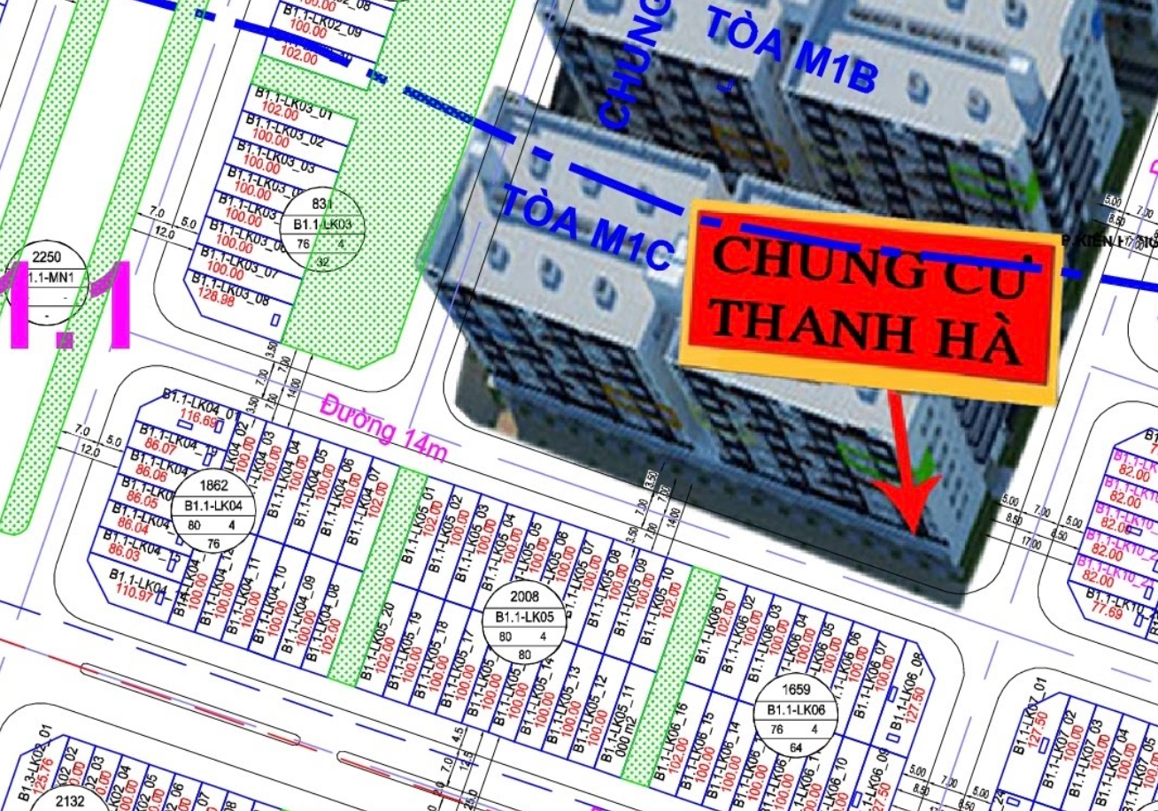 Phân khu liền kề B1.1 thuộc Khu đô thị Thanh Hà Cienco5, nằm trong khu Thanh Hà B, tiếp giáp trực tiếp với tổ hợp chung cư M1A – M1B – M1C và gần các trục giao thông nội khu lớn kết nối toàn khu đô thị.