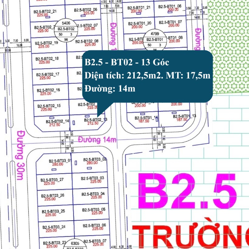 Bán Biệt Thự B2.5 – BT02-13 Góc Khu Đô Thị Thanh Hà Cienco5 Diện Tích 212,5m², Mặt Tiền 17,5m, View Trường Học