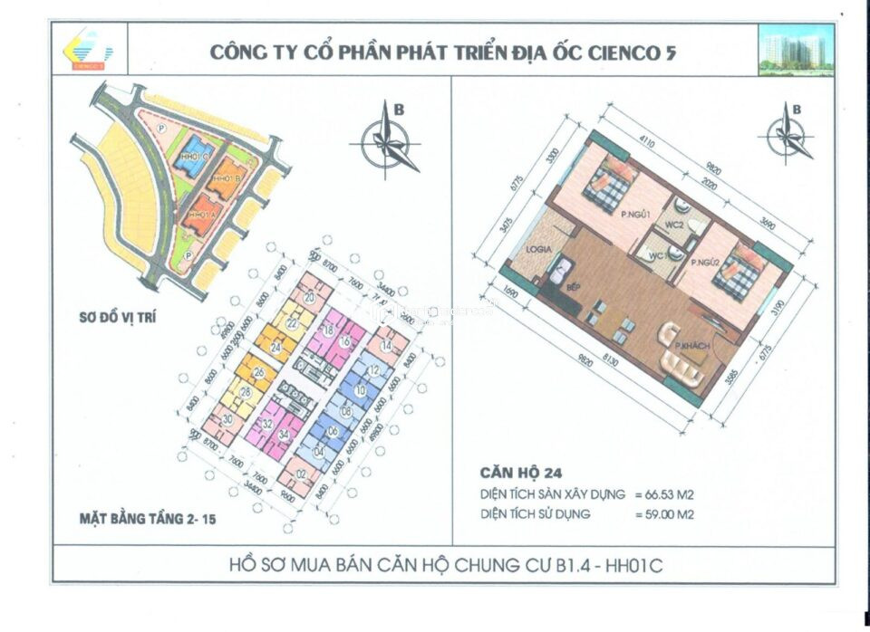 Căn hộ 70m² căn góc phụ tòa HH01C – lô B1.4 Khu đô thị