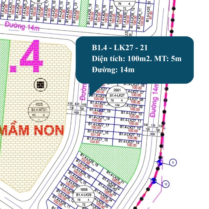 Bán liền kề B1.4 - LK27 – 21 diện tích 100m2 đường 14m tại khu đô thị Thanh Hà Cienco5