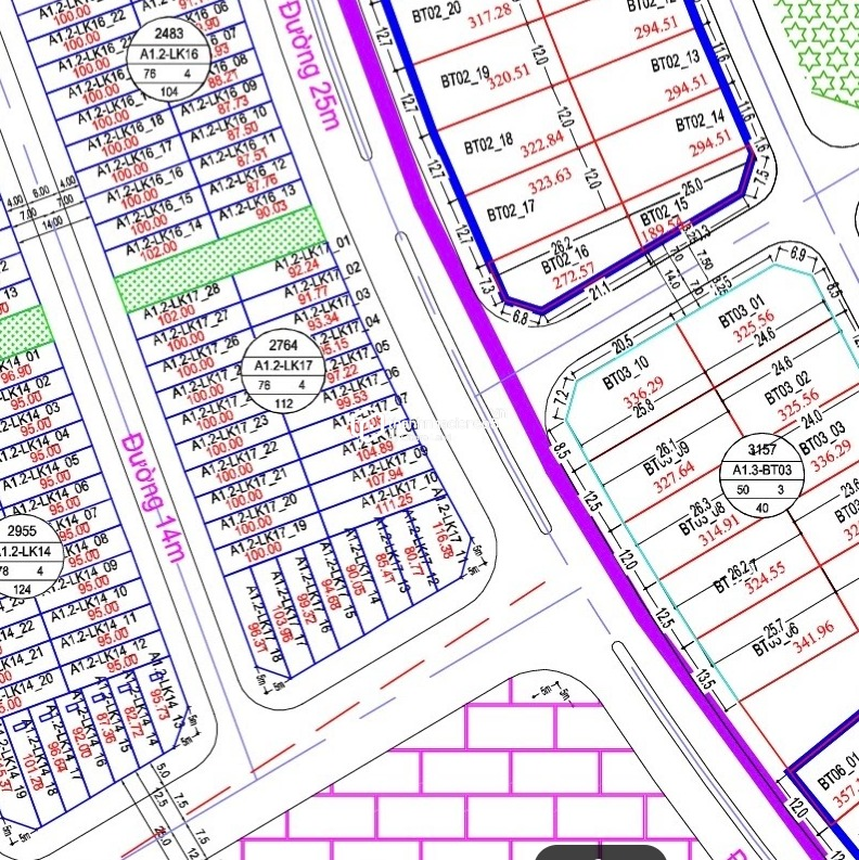 Diện tích: 102,06m², lô đất vuông vắn, dễ thiết kế xây dựng.