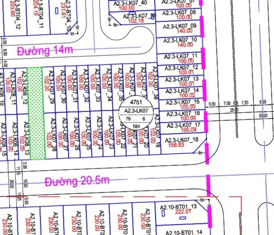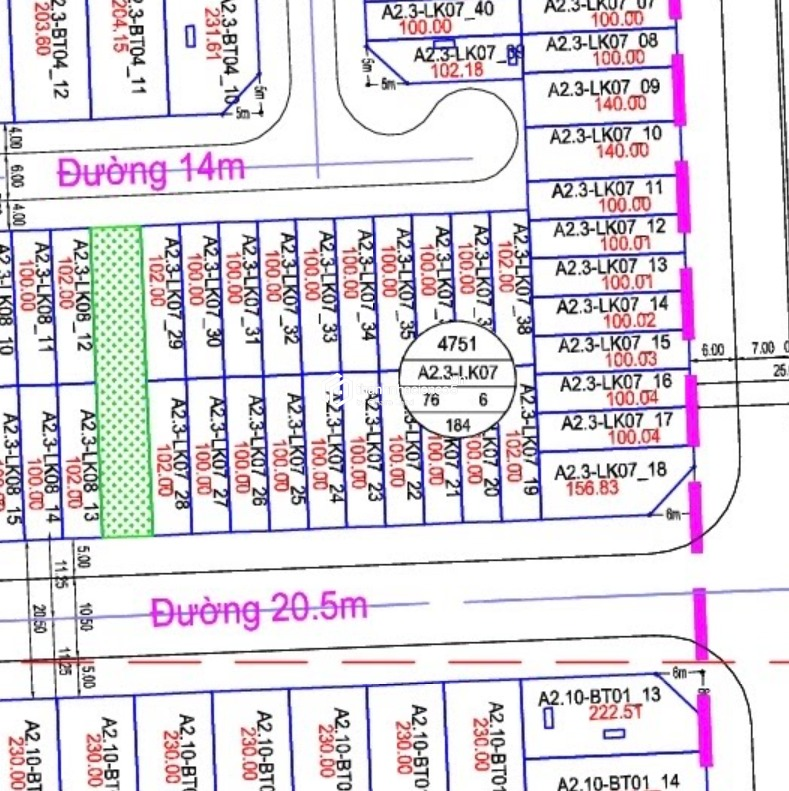 Vị trí: Thuộc phân khu A2.3, hạ tầng đồng bộ, dân cư sinh sống ổn định.